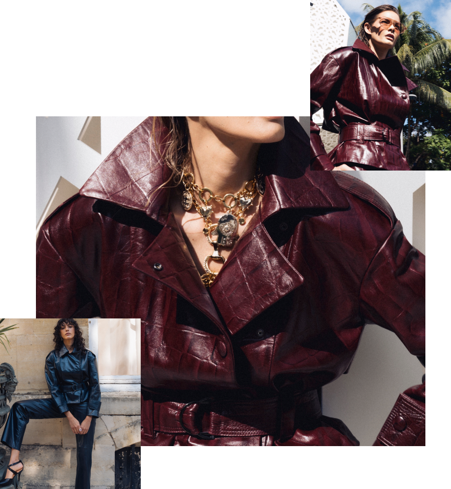 A textura Maxi Croco é inspirada na pele de crocodilo em escala ampliada, criada para gerar impacto, força e presença.